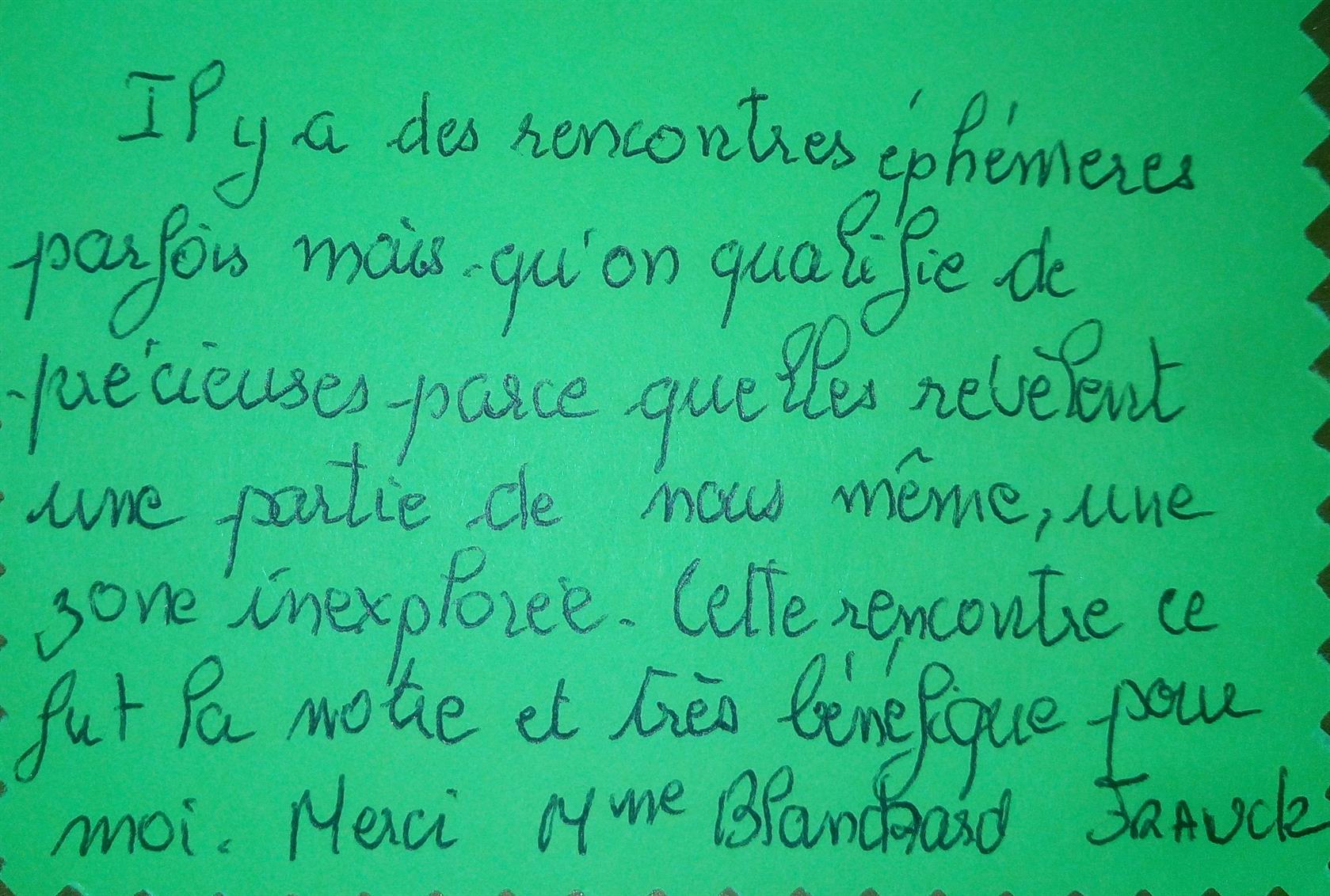 " Un grand merci pour la joie apportée et votre très grande gentilesse" V. Legent
